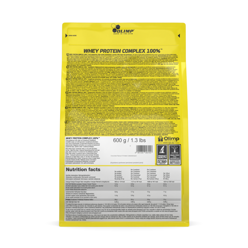 Olimp Whey Protein Complex 100%® to kompozycja wysokiej jakości ultrafiltrowanego koncentratu białek serwatkowych WPC oraz izolatu białek serwatkowych WPI-CFM® zachowanych w formie instant.Izolat białek serwatkowych CFM® oraz koncentrat białek serwatkowych WPC zastosowane w Whey Protein Complex 100%® 500G + 100G charakteryzuje wysoka wartość odżywcza. Pozyskiwane są w zaawansowanych procesach technologicznych, stąd zachowują pełną strukturę oraz aktywność funkcjonalnych białek serwatkowych. Pełnowartościowe izolowane i koncentrowane białka są również najbardziej wartościowym źródłem protein dla sportowców wyczynowych oraz osób aktywnych fizycznie.Odżywka białkowa Whey Protein Complex 100%® przyczynia się do wzrostu lub utrzymania prawidłowej masy mięśniowej.