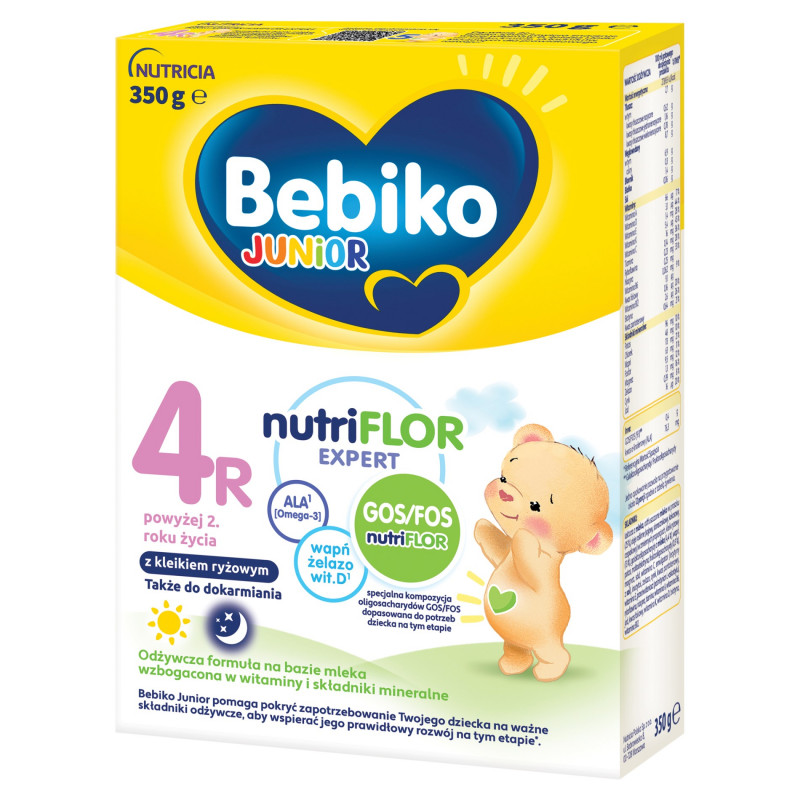 Zaleca się, aby przejście z karmienia Bebiko Junior 3R nutriFLOR Expert na Bebiko Junior 4R nutriFLOR Expert przeprowadzać stopniowo, zmniejszając ilość proszku Bebiko Junior 3R nutriFLOR Expert i zwiększając ilość proszku Bebiko Junior 4R nutriFLOR Expert.