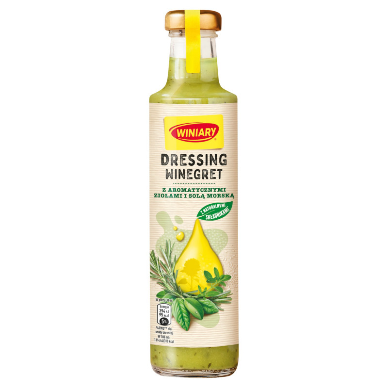 Dressing WINIARY winegret z aromatycznymi ziołami i solą morską to klasyka, która podkreśli smak zielonych sałat i warzyw. Idealny do lekkich, zdrowych potraw. Z WINIARY Twoje sałatki będą jeszcze bardziej wyjątkowe!