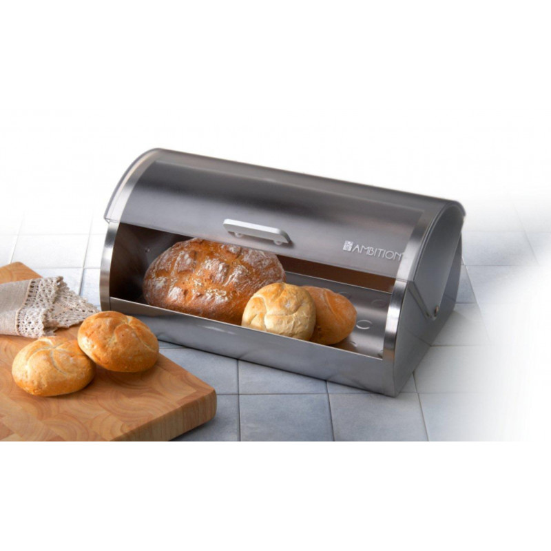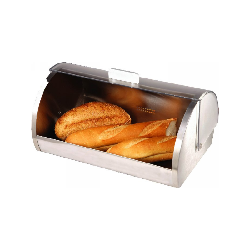 Elegancki chlebak z satynowanej stali pozwalający zachować chrupiącą świeżość pieczywa. Wytworności nadaje akrylowa pokrywa, przypominająca szybę oszronioną mrozem.