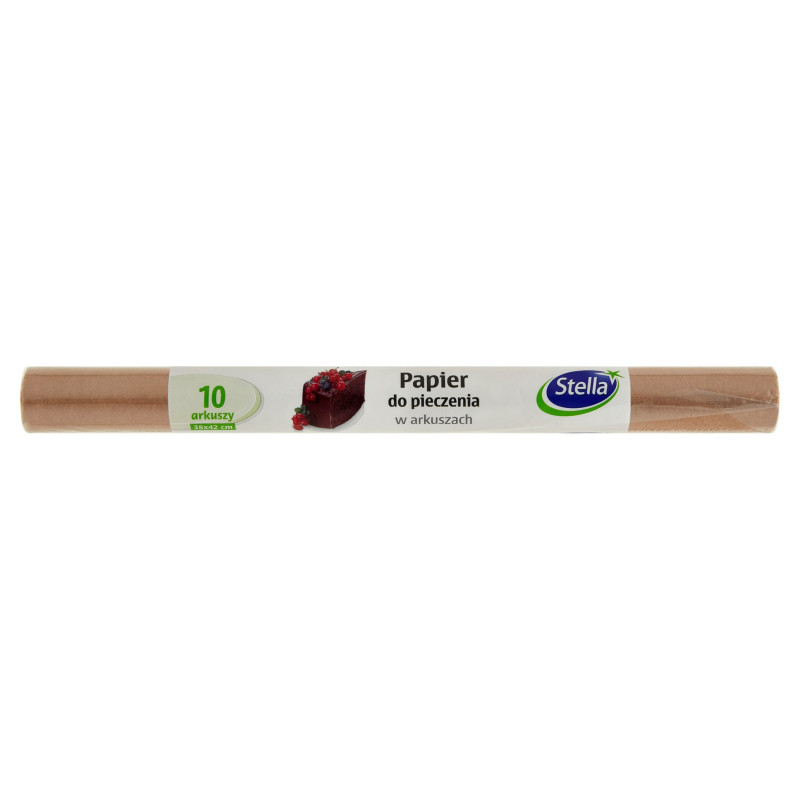Papier do pieczenia - 38 x 42 cm, 10 arkuszy. Rozmiar arkusza 38 x 42 cm jest dostosowany do typowego rozmiaru dużej blachy. Obustronnie powlekany silikonem dzięki czemu zapobiega przywieraniu ciast oraz kruszeniu się wypieków przy wyjmowaniu z formy. Nie wymaga smarowania tłuszczem foremek i blach. Odporny na wysokie temperatury, nie nagrzewa się - maksymalna temperatura użycia 220°C. Bezzapachowy. Może być stosowany do zamrażania i podgrzewania produktów, nadaje się do kuchenek mikrofalowych.