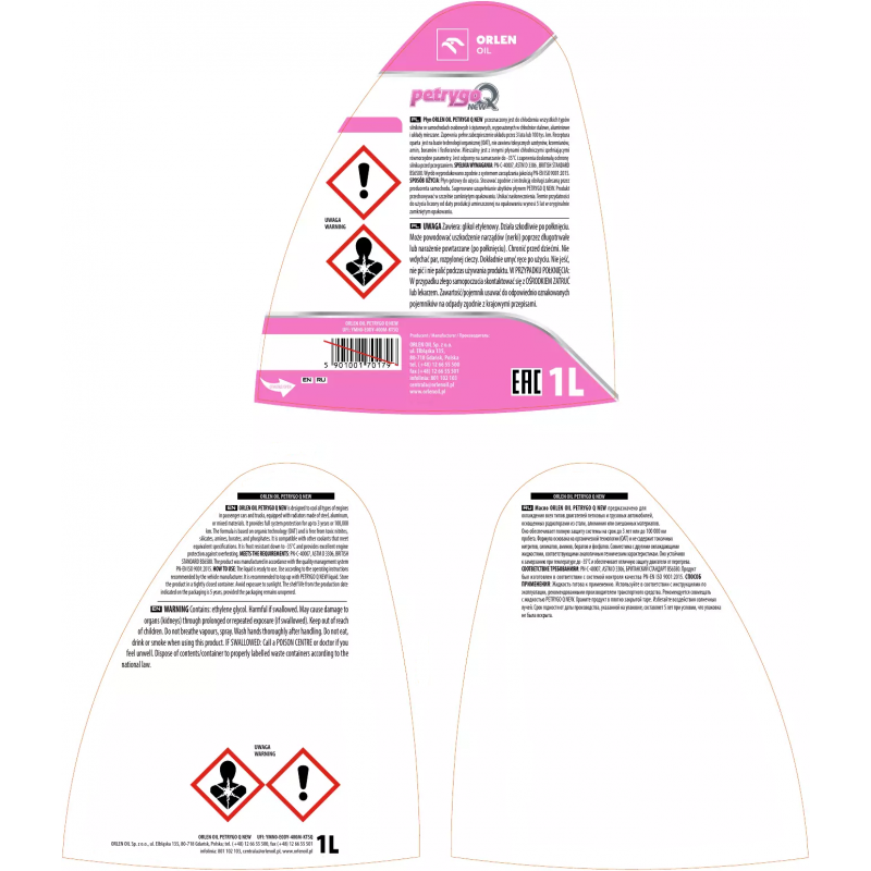 Płyn do chłodnic Petrygo Q NEW produkowany jest na bazie wysokiej jakości glikolu etylenowego oraz specjalnie dobranym pakiecie dodatków uszlachetniających, które zapewniają pełną ochronę antykorozyjną. Przeznaczony jest do wszystkich typów silników w samochodach osobowych i ciężarowych wyposażonych w chłodnice stalowe, aluminiowe oraz układy mieszane. Płyn tworzy w układzie chłodzenia wyjątkowo odporną powłokę ochronną, zabezpieczając go przed korozją i kawitacją w zakresie eksploatacji do 100 tys km lub przez 3 lata. Płyn w układzie jest odporny na zamarzanie do -35°C i zapewnia doskonałą ochronę silnika przed przegrzaniem.