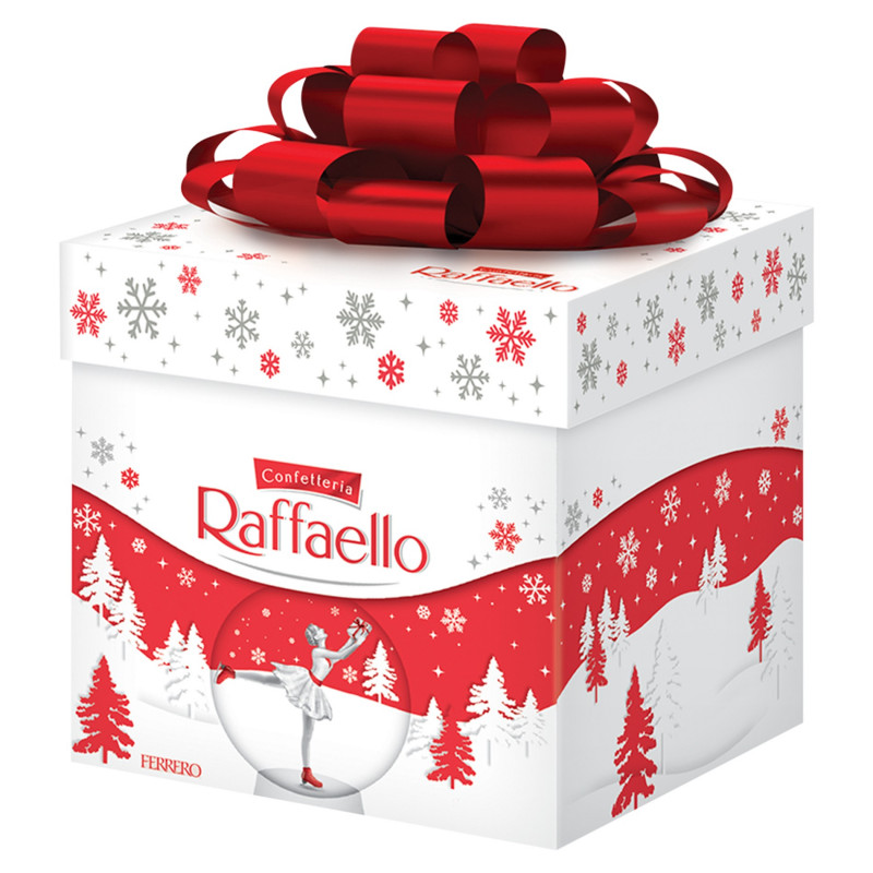 Raffaello to harmonijne połączenie starannie wyselekcjonowanych składników o różnych teksturach: chrupiący biały migdał oraz delikatne płatki kokosa spotykają się z aksamitnym kremem, dostarczając prawdziwie smakowite doznania.