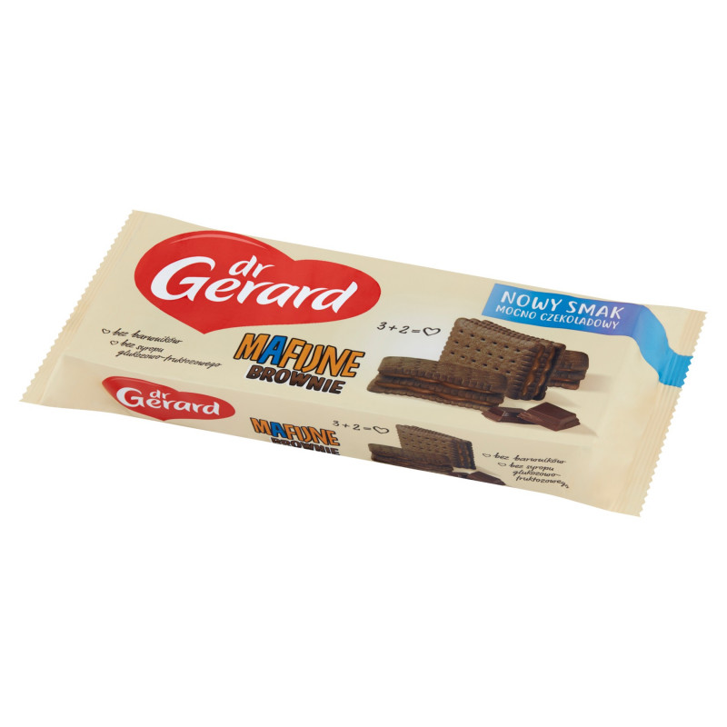 Herbatniki kakaowe przekładane kremem czekoladowym (46%).