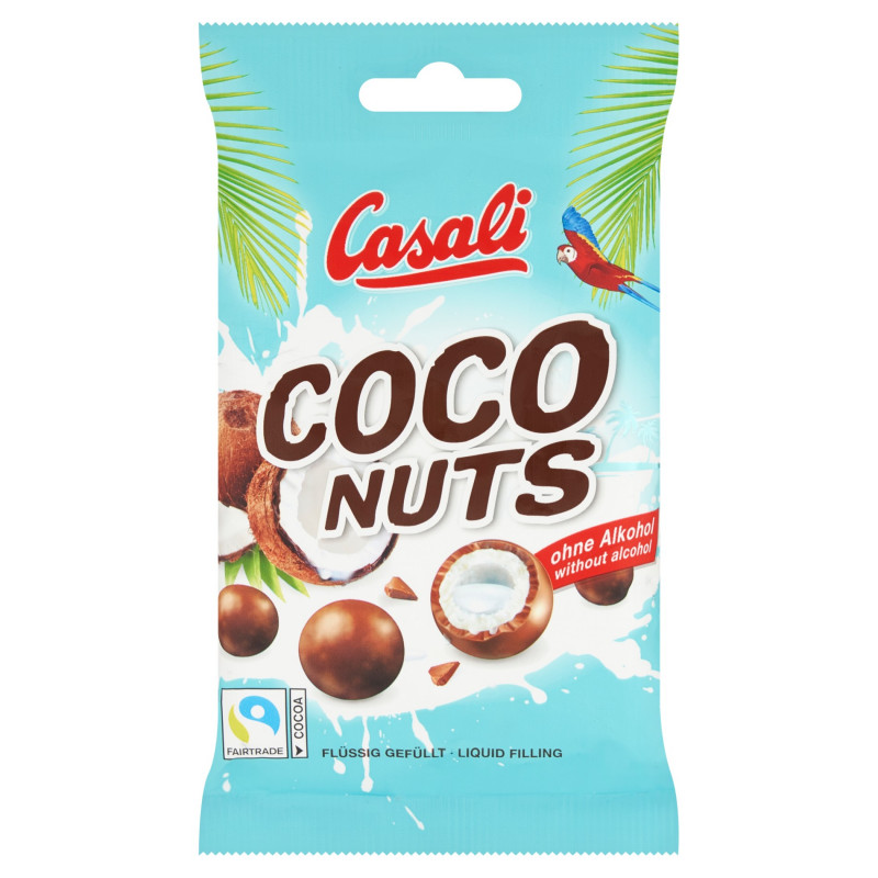 Draże z płynnym nadzieniem (10 %), oblane mleczną (28 %) oraz białą czekoladą (33 %).
