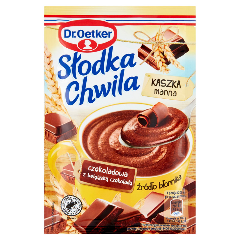 Deser w proszku - kasza manna czekoladowa z belgijską czekoladą i błonnikiem.