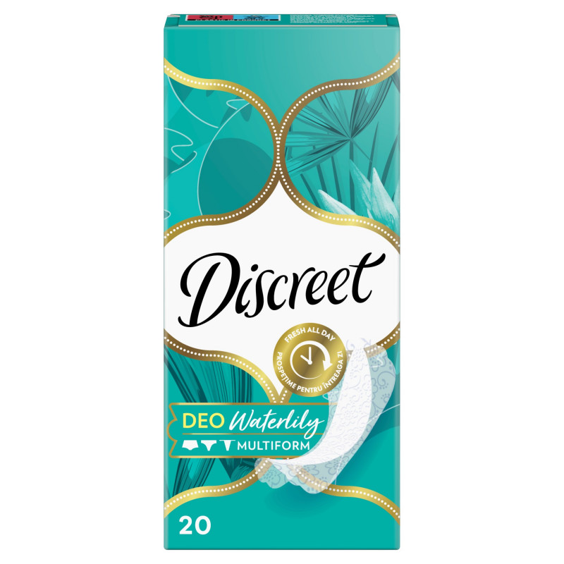 Wkładki Discreet Multiform pomogą Ci poczuć się świeżo i pięknie bez względu na to, jaki jest Twój styl! Te wkładki higieniczne pozwalają swobodnie oddychać skórze miejsc intymnych, co zapewnia uczucie świeżości i komfortu aż do 12 godzin. Są tak cienkie, że nawet ich nie poczujesz, a ich uniwersalny kształt sprawia, że pasują do każdego typu bielizny. Charakterystyczny zapach Waterlily pachnie tak świeżo i kobieco. Bez względu na to, co przyniesie Ci dzień, te wkładki sprawią, że wszystko się uda!