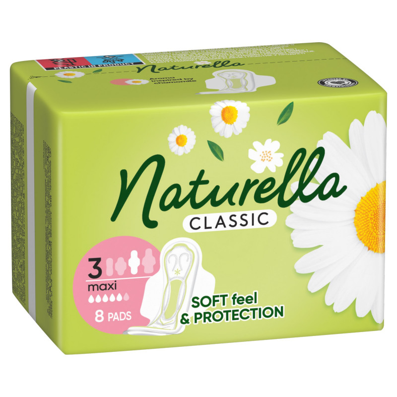 Podpaski Naturella Classic mają delikatny aromat stworzony na bazie rumianku, aby zapewnić uczucie świeżości