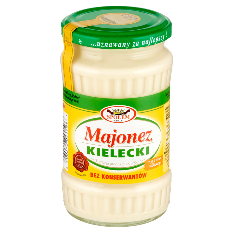 Majonez Kielecki to kultowa marka majonezu i najważniejszy produkt WSP „Społem”, dostępny na rynku już od 1959 roku. Doskonały smak, kremowa konsystencja i najwyższej jakości składniki sprawiają, że Kielecki od pokoleń cieszy się uznaniem rodzimych i zagranicznych konsumentów oraz ekspertów kulinarnych. Dowodem na to są liczne nagrody i wyróżnienia oraz fakt, że Kielecki to obecnie drugi najchętniej kupowany majonez w naszym kraju. Jego receptura stała się podstawą do opracowana Polskiej Normy majonezu.