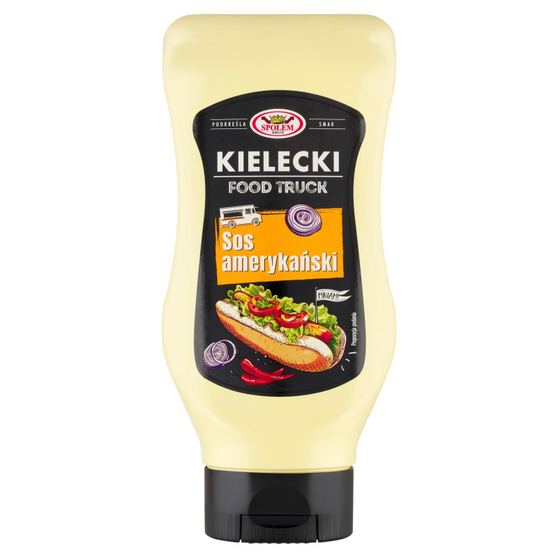 Sos Kielecki amerykański uniwersalny z dodatkiem przyprawy curry. Pasteryzowany.