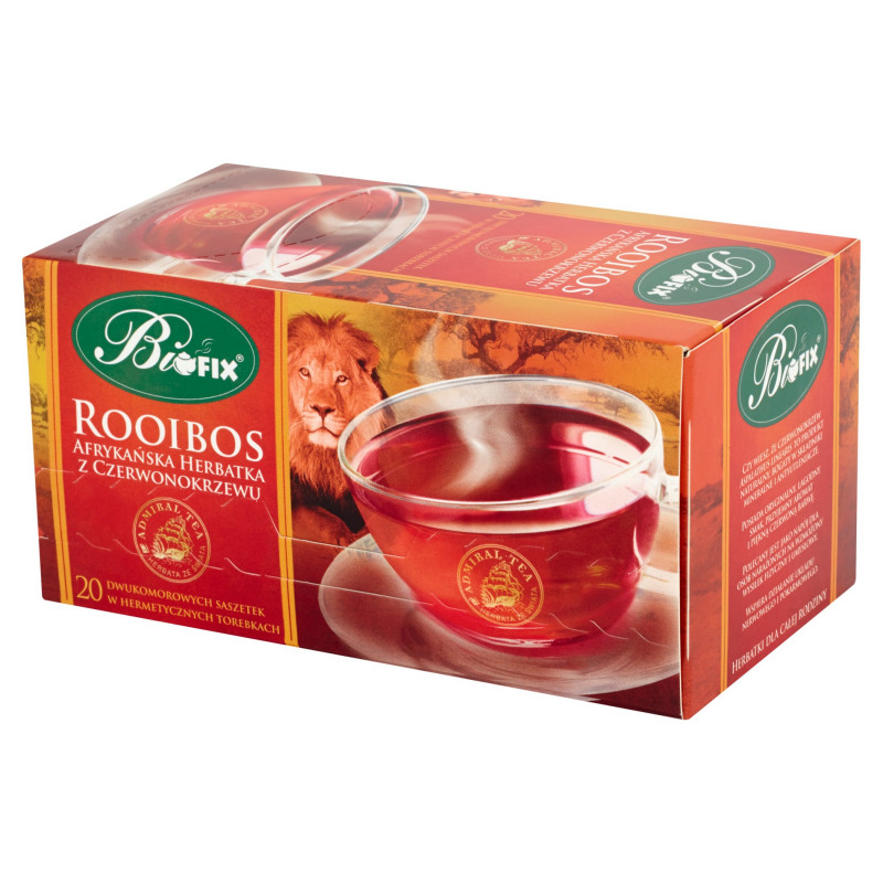 Herbatka Rooibos produkowana jest z liści czerwonokrzewu Aspalathus linearis. Zebrane liście rośliny tnie się na drobne kawałki, a następnie poddaje procesowi oksydacji. Wysuszone drobne fragmenty liści są następnie przesiewane. Z tak powstałej herbatki otrzymujemy przepyszny napar o oryginalnym, słodkim miodowym smaku i złotej barwie. Herbatka Rooibos to bogate źródło minerałów i mikroelementów (żelaza, potasu, miedzi, wapnia, manganu, fluoru, sodu, cynku, magnezu), posiada dużą zawartość przeciwutleniaczy, polifenoli, flawonoidów oraz witaminy C. Wszystkie te substancje wywierają pozytywny wpływ na nasz organizm. Ponadto herbatka Rooibos nie zawiera kofeiny, dzięki czemu jest bezpieczna dla dzieci i wszystkich tych, którzy muszą unikać kofeiny. Polecana jest jako napój dla osób narażonych na wzmożony wysiłek fizyczny i umysłowy. Wspomaga działanie układu nerwowego i pokarmowego.