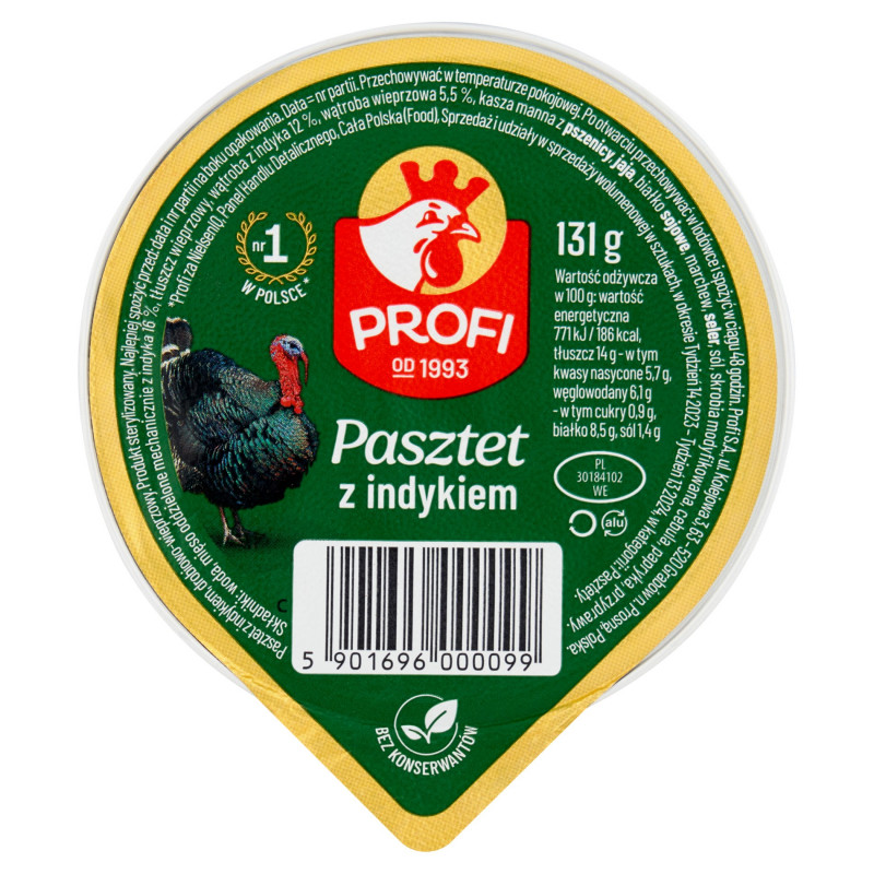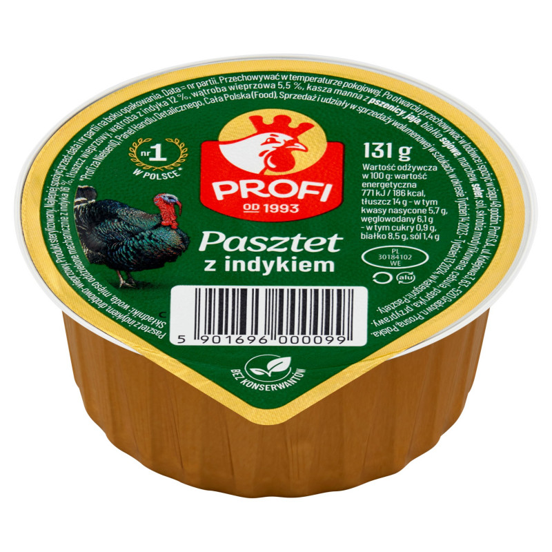 Pasztet z indykiem, drobiowo-wieprzowy. Produkt sterylizowany.