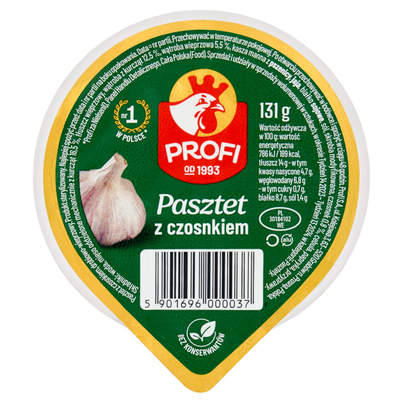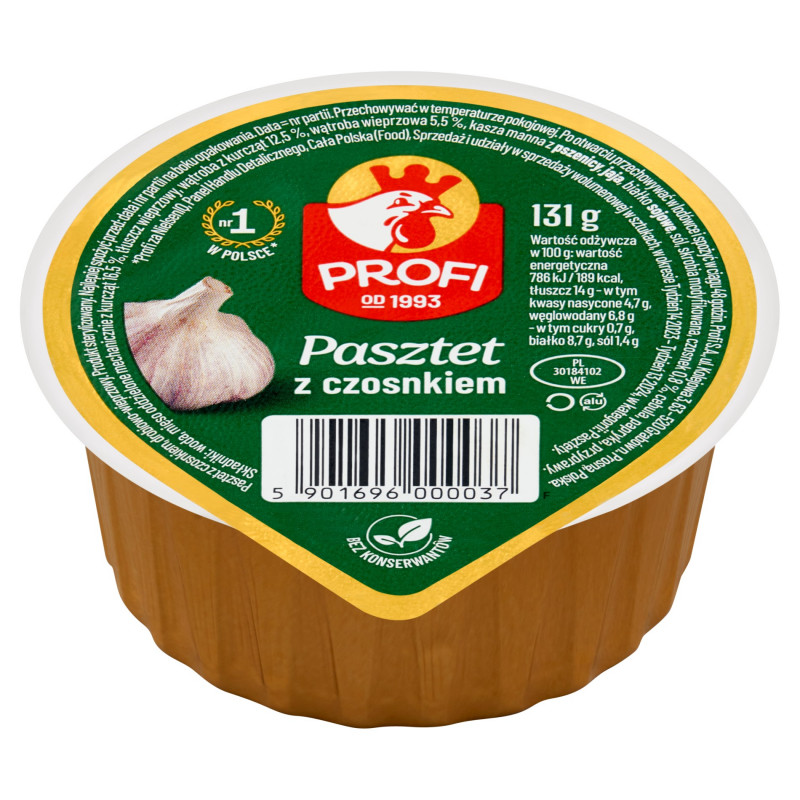 Pasztet z czosnkiem, drobiowo-wieprzowy. Produkt sterylizowany.
