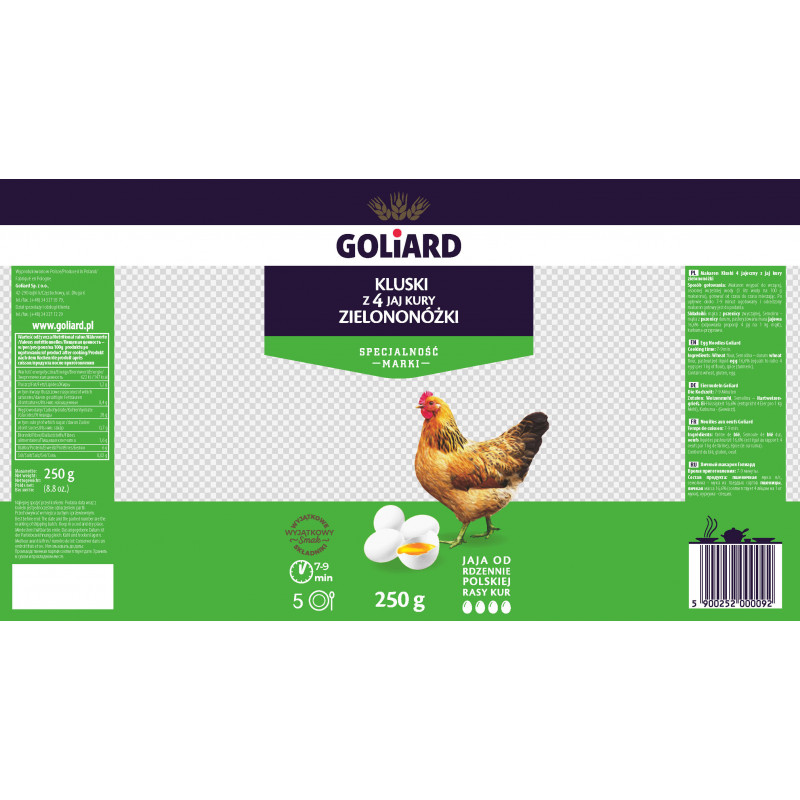 Makaron z jaj kury zielononóżki. Kura zielononóżka kuropatwiana jest polską rodzimą rasą przystosowaną do chowu w warunkach naturalnych. Jednym z podstawowych walorów jaj zielononóżek jest obniżona zawartość cholesterolu w porównaniu do jaj innych ras.Naturalne jajo od tych kur to najlepsze źródło aminokwasów, wielonasyconych kwasów tłuszczowych, witamin i związków mineralnych.