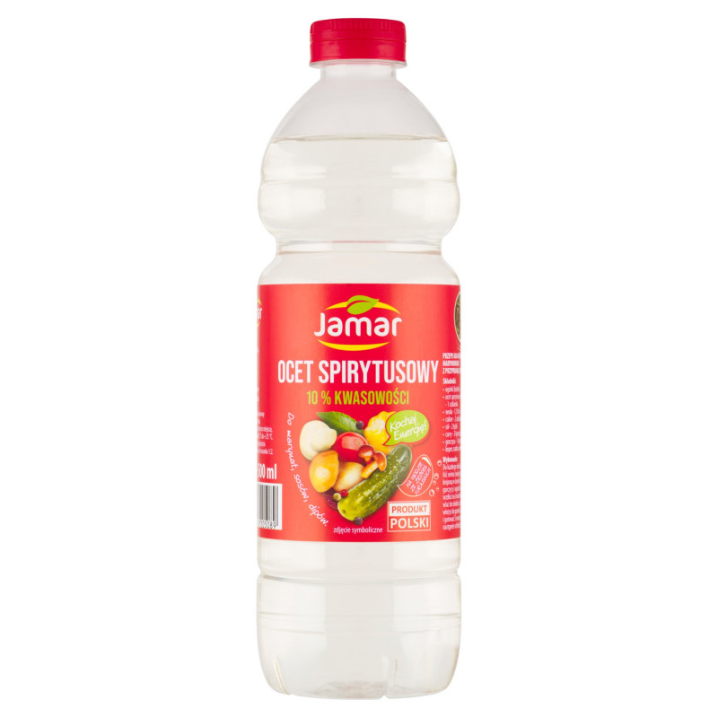 Ocet spirytusowy 10% Jamar to najchętniej wybierany ocet w Polsce. Nie zawiera żadnych dodatków. Bardzo dobry do marynowania warzyw, grzybów oraz mięs.