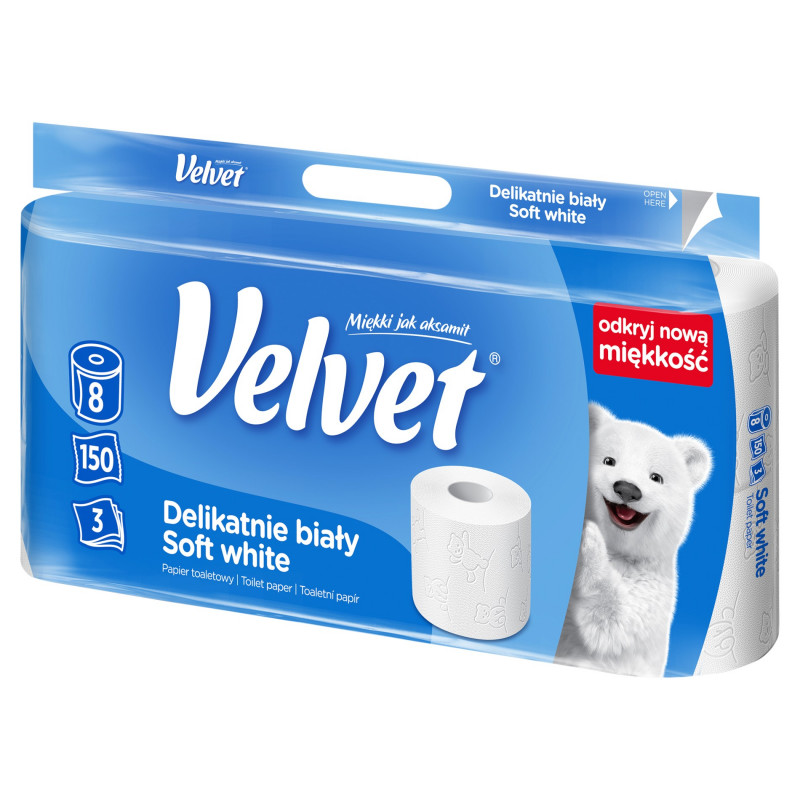 Data produkcji: na opakowaniu; Termin ważności: nieograniczony. Podziel się z nami swoją opinią: serwis.konsumenta@velvetcare.com Papier toaletowy, 8 rolek, 3 warstwy;