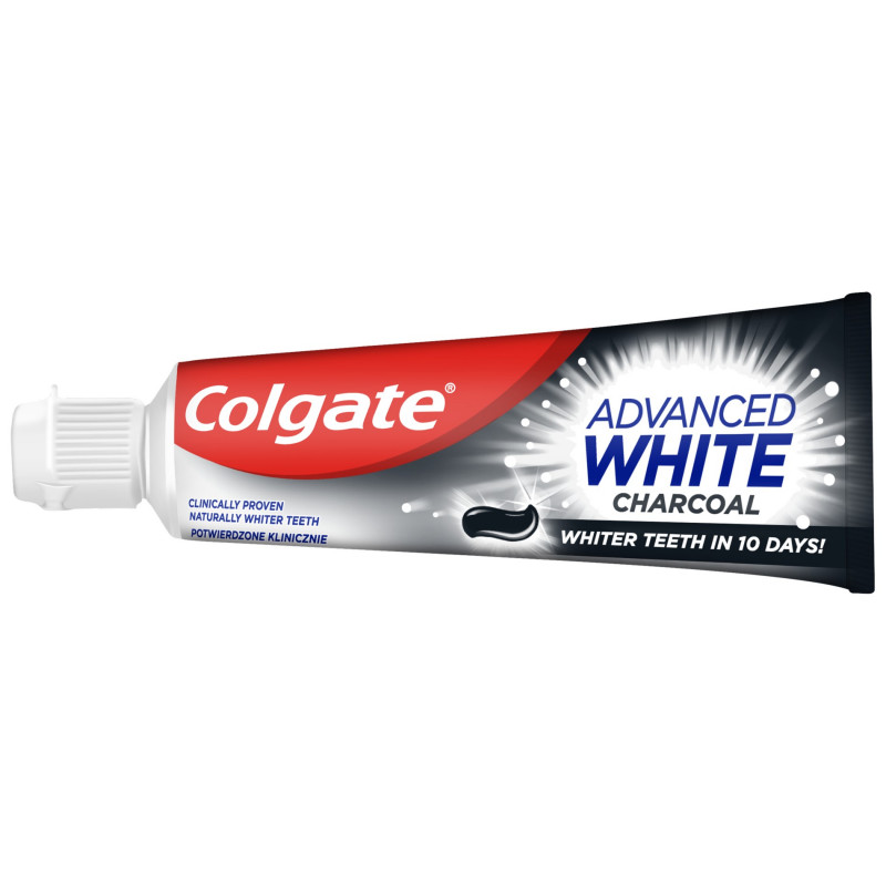 Pasta do zębów Colgate Advanced White Charcoal z systemem SmartFoam i węglem aktywnym usuwa przebarwienia powierzchniowe i przywraca naturalną biel zębów już w 10 dni. Jej skuteczność została potwierdzona klinicznie.