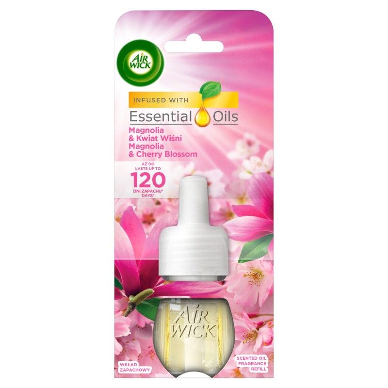 Zapach Air Wick Freshmatic Magnolia i Kwiat Wiśni należy do kolekcji Essential Oils której kompozycje zapachowe zostały zainspirowane naturalnymi esencjami pochodzącymi z owoców, kwiatów i roślin, aby stworzyć wyjątkowy nastrój w Twoim domu.