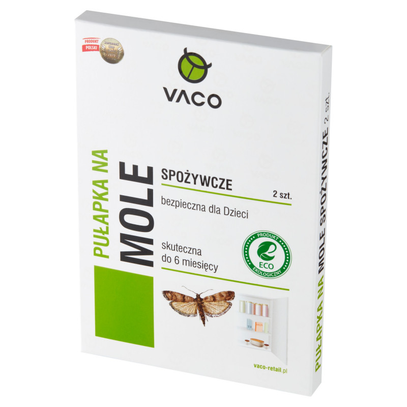 Informacje dodatkowe: Pułapki należy rozmieszczać na zewnątrz miejsc przechowywania żywności (na szafkach, kredensach), na wysokości ok. 1,5 - 2 m od podłogi. Montaż pułapki ułatwi Ci dołączona do opakowania taśma dwustronna - przyklej ją we wskazanym miejscu. Pułapek nie należy rozmieszczać w pobliżu otworów wentylacyjnych, otwartych okien, grzejników. Pojedyncza pułapka zabezpiecza ok. 50 m2 powierzchni lokalu. Nie zawiera insektycydów i innych szkodliwych substancji chemicznych. Zużytą pułapkę należy traktować jako odpad komunalny. Produkt ekologiczny.
