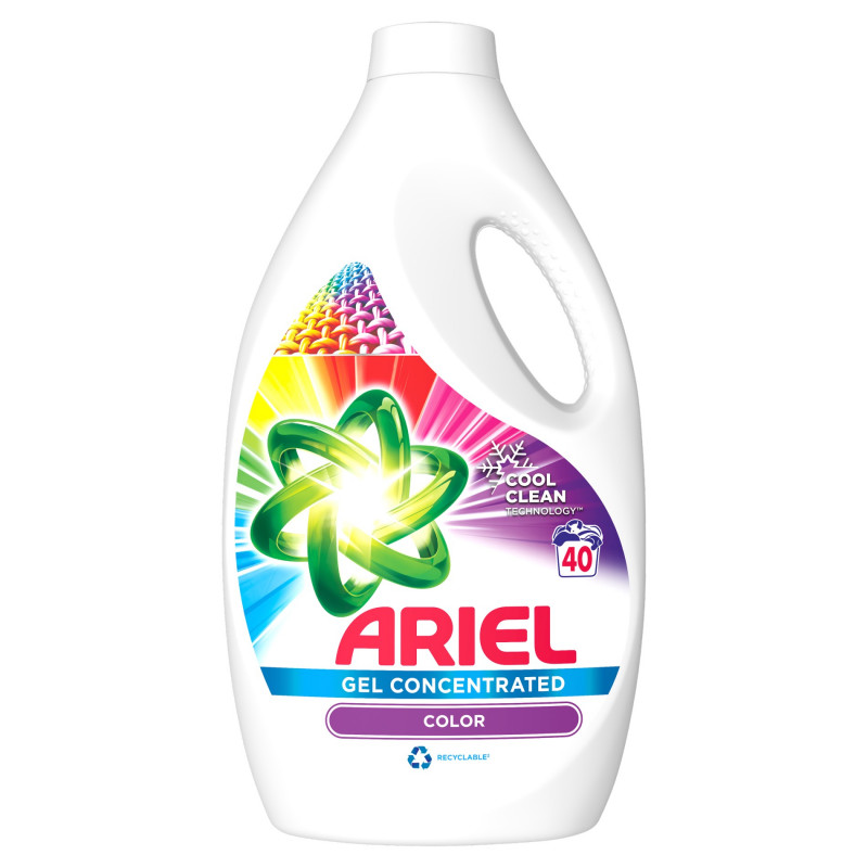 Płyn do prania Ariel Color zapewnia doskonałe rezultaty już w 1. praniu, nawet w niższych temperaturach. Jego formuła została opracowana specjalnie z myślą o praniu w niższych temperaturach i zawiera technologię COOL CLEAN. Płyn do prania Ariel jest bezwzględny dla plam, ale łagodny dla tkanin i sprawia, że kolorowe ubrania zachowują intensywne barwy. Ponadto płyn do prania Ariel jest dostępny w opakowaniu nadającym się do recyklingu. Można również użyć zielonej nakrętki płynu Ariel Color do wstępnego usuwania plam z zabrudzonych ubrań, a następnie włożyć je do pralki. Aby uzyskać najlepsze rezultaty, włóż do bębna pralki nakrętkę dozującą z płynem do prania. Ze względu na ochronę środowiska nie dołączamy zakrętki z miarką do każdej butelki. Zakrętka z miarką jest dostępna bezpłatnie na stronie ariel.info.
