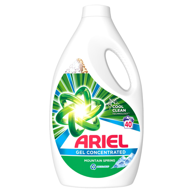 Płyn do prania Ariel Mountain Spring zapewnia doskonałe rezultaty już w 1. praniu, nawet w niższych temperaturach. Jego formuła została opracowana specjalnie z myślą o praniu w niższych temperaturach i zawiera technologię COOL CLEAN. Płyn do prania Ariel rozjaśnia białe ubrania i zapobiega powstawaniu plam z potu. Ponadto płyn do prania Ariel jest dostępny w opakowaniu nadającym się do recyklingu. Można również użyć zielonej nakrętki płynu Ariel Mountain Spring do wstępnego usuwania plam, a następnie włożyć zabrudzone ubrania do pralki. Aby uzyskać najlepsze rezultaty, włóż do bębna pralki nakrętkę dozującą z płynem do prania. Ze względu na ochronę środowiska nie dołączamy zakrętki z miarką do każdej butelki. Zakrętka z miarką jest dostępna bezpłatnie na stronie ariel.info.