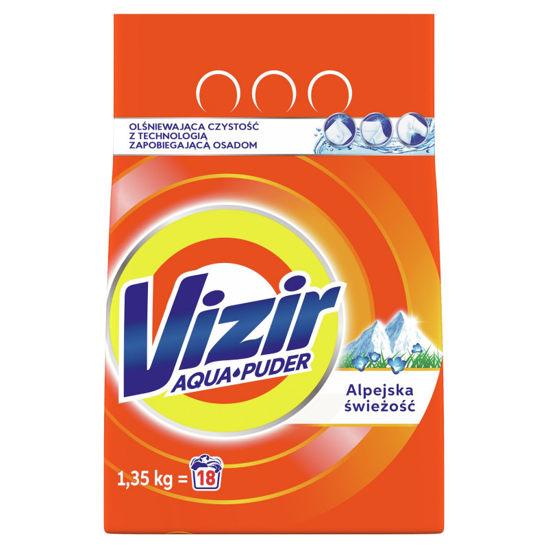 Proszek do prania Vizir AquaPuder Alpine Fresh z technologią zapobiegającą osadom, został stworzony, by zapewnić jeszcze lepsze efekty czyszczenia. Proszek do prania rozpuszcza się w kontakcie z wodą, natychmiast się uaktywniając, aby ubrania były olśniewająco czyste. Powstał, aby usunąć najbardziej uporczywe zabrudzenia z miejsc, które najtrudniej wyprać, takich jak mankiety, kołnierzyki i pachy. Używaj razem z płynem do płukania tkanin Lenor, by uzyskać dodatkową miękkość i świeżość.