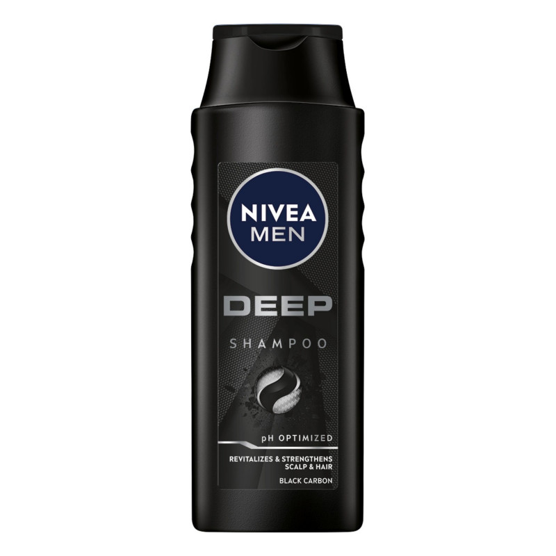 Postaw na wzmocnienie i rewitalizację męskich włosów w szamponem dla mężczyzn NIVEA MEN DEEP! Oczyszczająca formuła z czarnym węglem zapewnia głębokie oczyszczenie dla włosów i skóry głowy, a także długotrwałą świeżość. Męski szampon usuwa nadmiar sebum i rewitalizuje skórę głowy i włosy, by były zadbane i gładkie w dotyku. Łagodna formuła ma odpowiednie dla skóry głowy pH, dzięki czemu nie wysusza podczas mycia, nawet przy codziennym stosowaniu. Przy długotrwałym stosowaniu włosy stają się wzmocnione u nasady i bardziej lśniące. Postaw na głębokie oczyszczenie i rewitalizację włosów z szamponem dla mężczyzn od NIVEA MEN!