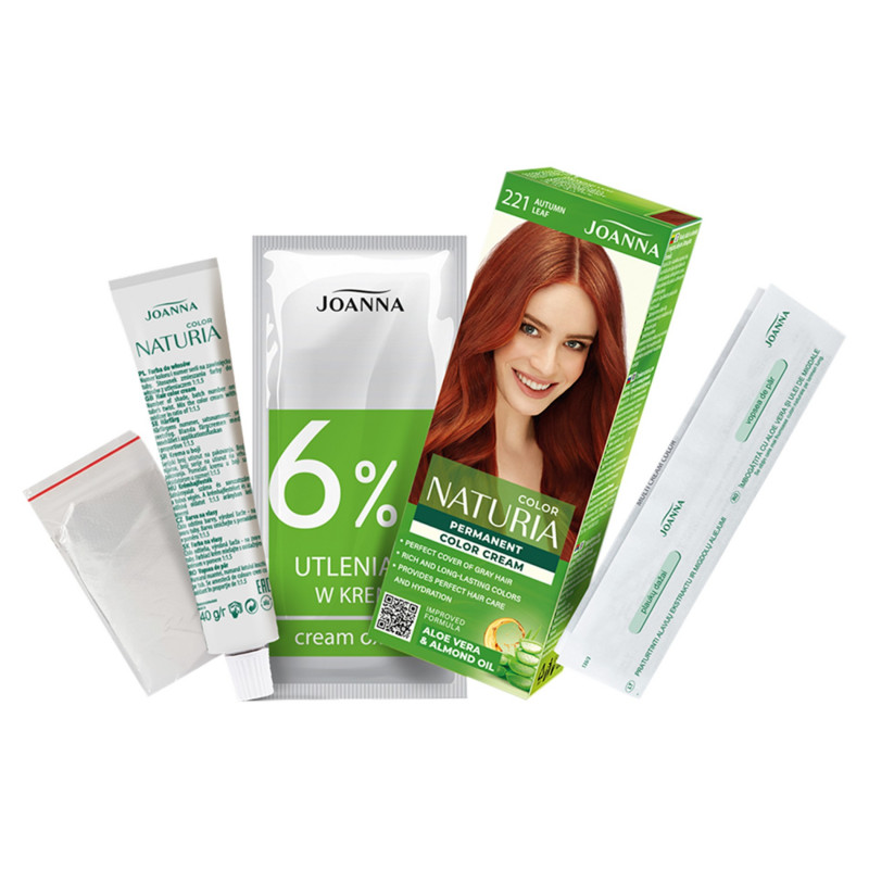 Farba Naturia Color w odcieniu Jesienny liść nr 221 to naturalny miedziany, stonowany, lekko wpadający w brąz, ciepły kolor. Pięknie podkreśli urodę typowych Jesieni i innych ciepłych typów urody o śniadych karnacjach.