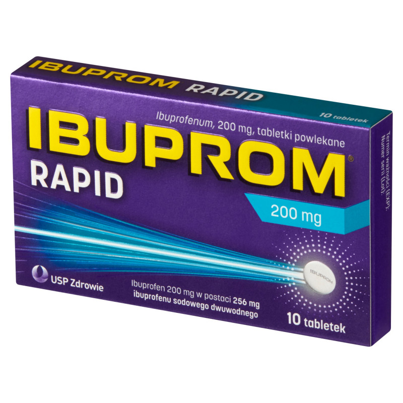 Składniki: 1 tabletka powlekana zawiera substancję czynną ibuprofen 200 mg w postaci 256 mg ibuprofenu sodowego dwuwodnego oraz substancje pomocnicze, w tym laktozę jednowodną, żółcień pomarańczową, lak (E 110), czerwień Allura AC, lak (E 129) - szczegółowe informacje w ulotce